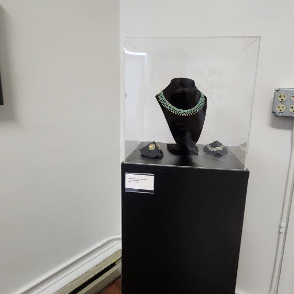 Beads and Beadwork are found throughout the space in both an educational and artistic way.